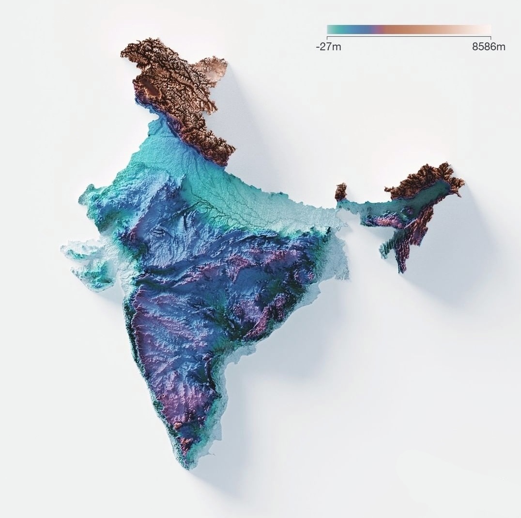 Mahima on X: “The topographic 3D rendered map of India. Note This