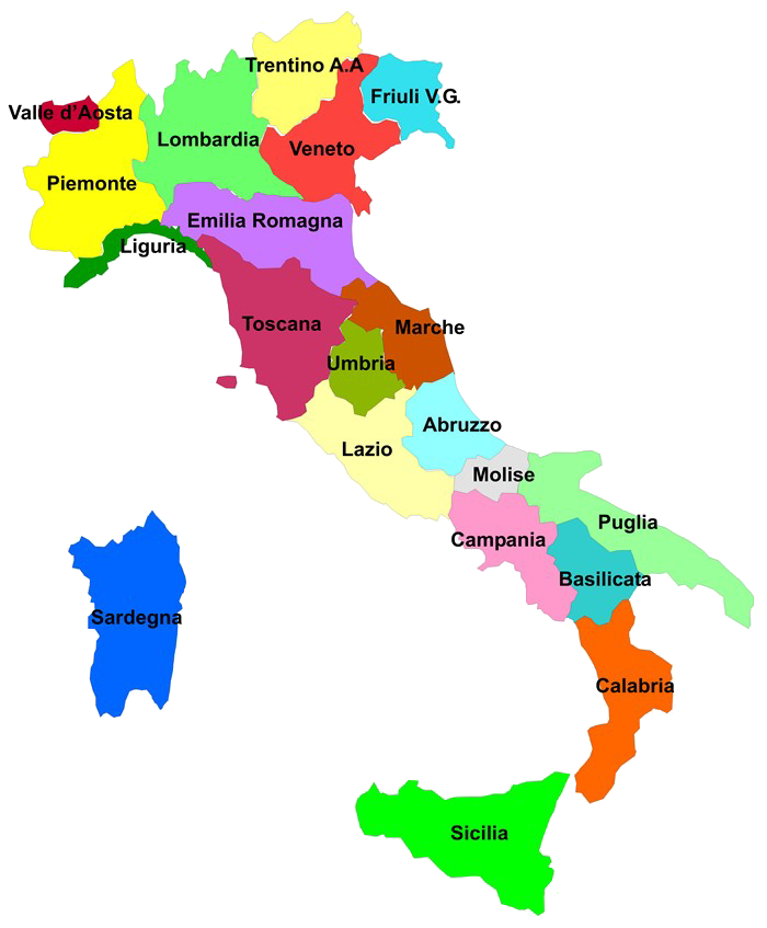 Map of Italy Regions English Labels | Italy map, Map of italy